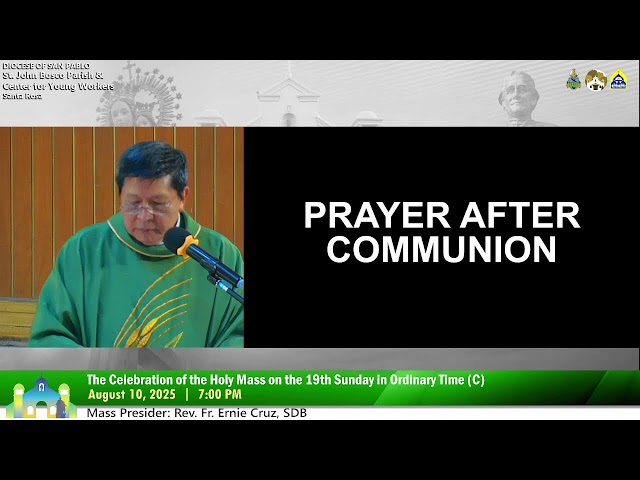 August 10 2025 7:00PM Holy Eucharistic Celebration of the 19th Sunday of Ordinary Time
